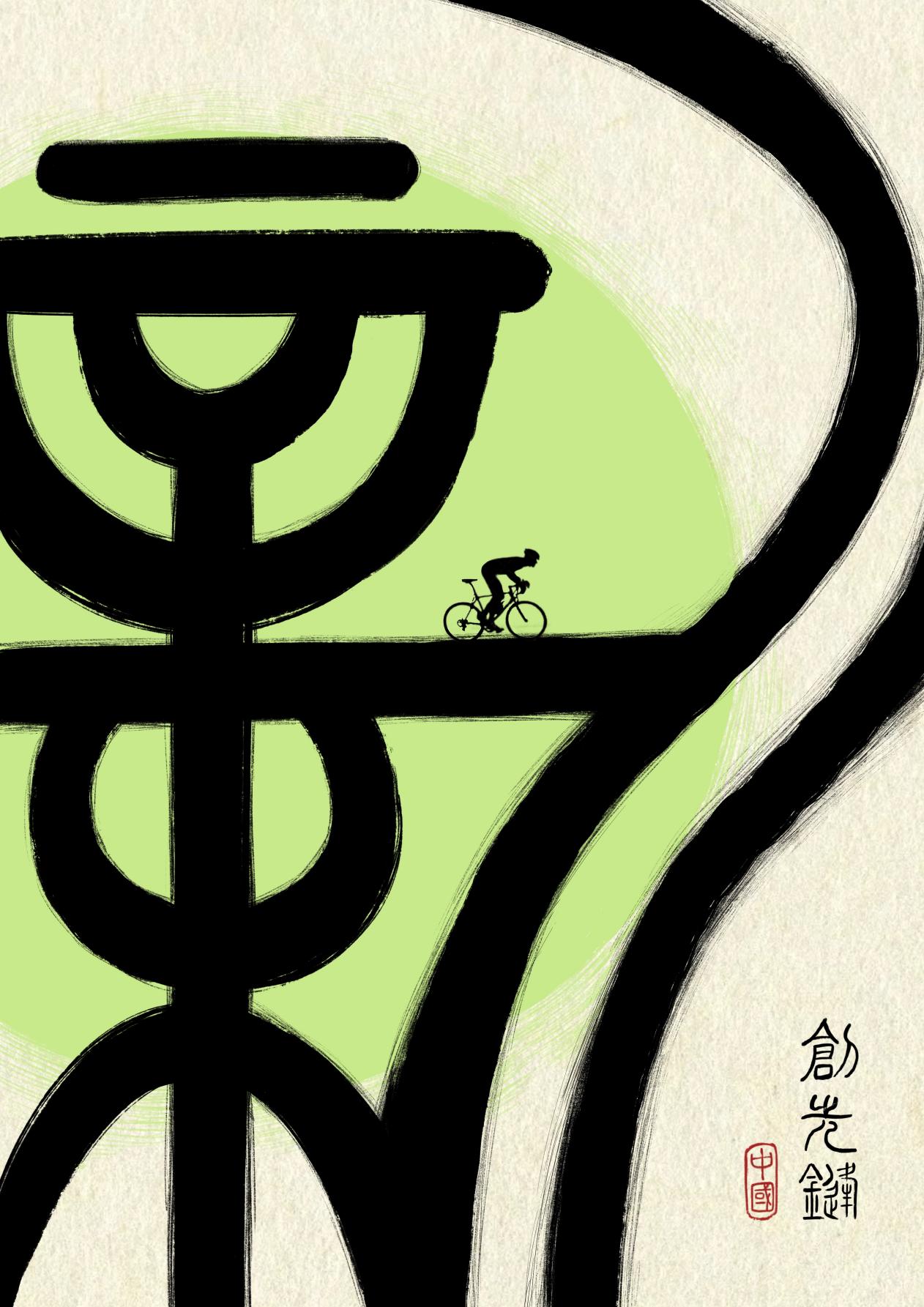 本设计作品体现了发掘主题词“清廉”的深层含义,以书法进行字体图形化的创意。作品运用了以小见大的手法:作品中的骑行者是向前冲锋的领袖,这是作品中的小人物;手写书体是大背景。作品右下角相对应“创先锋”的口号,再次与主题“廉洁”相呼应 。图案的背景采用宣纸肌理,与书体及画风相得益彰,给人一种朴素清新的感觉。