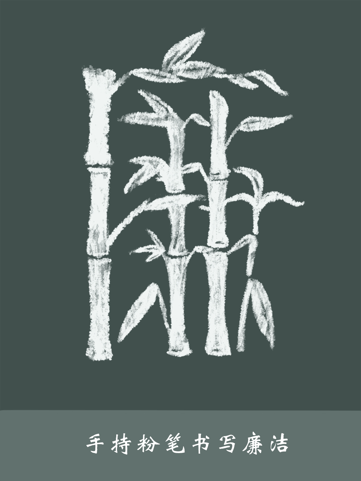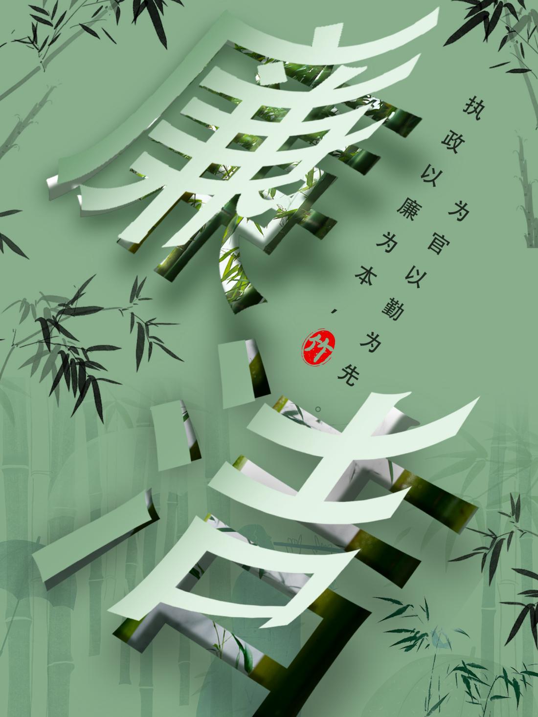 清正廉洁,是中国人代代传承的红色基因。竹挺拔修长,四季青翠,傲雪凌霜,在生长期间不畏严寒酷暑,不畏风霜雪欺,作品使用竹子作为元素与教师的工具粉笔相结合,拼成廉字,意喻着教师秉持廉洁之心,教书育人,将廉洁理念代代相传。