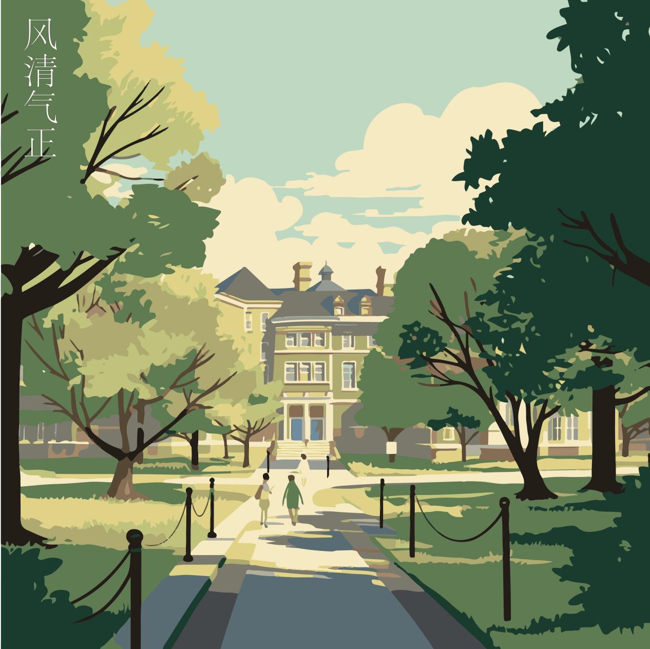 这幅插画作品的主题是"清韵初心",它旨在表现校园中清新的风景和廉洁的品质。总的来说,这幅插画作品以校园为背景,以学生为主体,传达出清新、廉洁、积极向上的校园氛围。它旨在引导人们关注环境保护和廉洁教育,让更多的人们认识到这些美好的品质对我们的生活和未来的重要性。