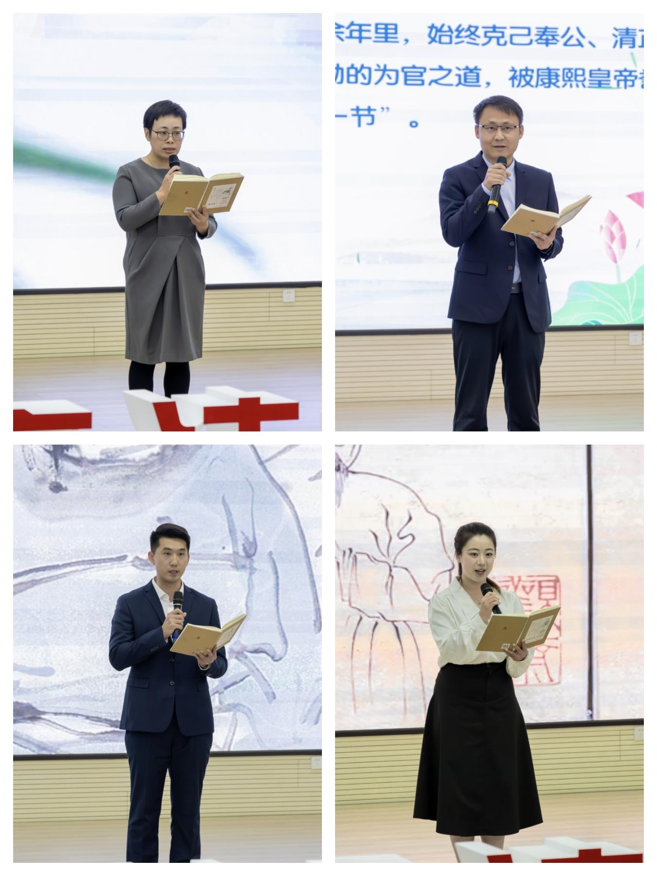 “我家洗砚池边树,朵朵花开淡墨痕。不要人夸好颜色,只留清气满乾坤”。我校科学技术处副处长云洋教授、政治与公共管理学院黄孝东副教授、国际教育交流学院辅导员张仲坤、文学院本科生刘佳作为诵读嘉宾,和大家分享了廉能第一于成龙、独持清德陈廷敬、清廉典范白居易、忠清亮直祁寯藻的廉洁小故事,生动展现了他们克己奉公、清廉自守的精神和品格。