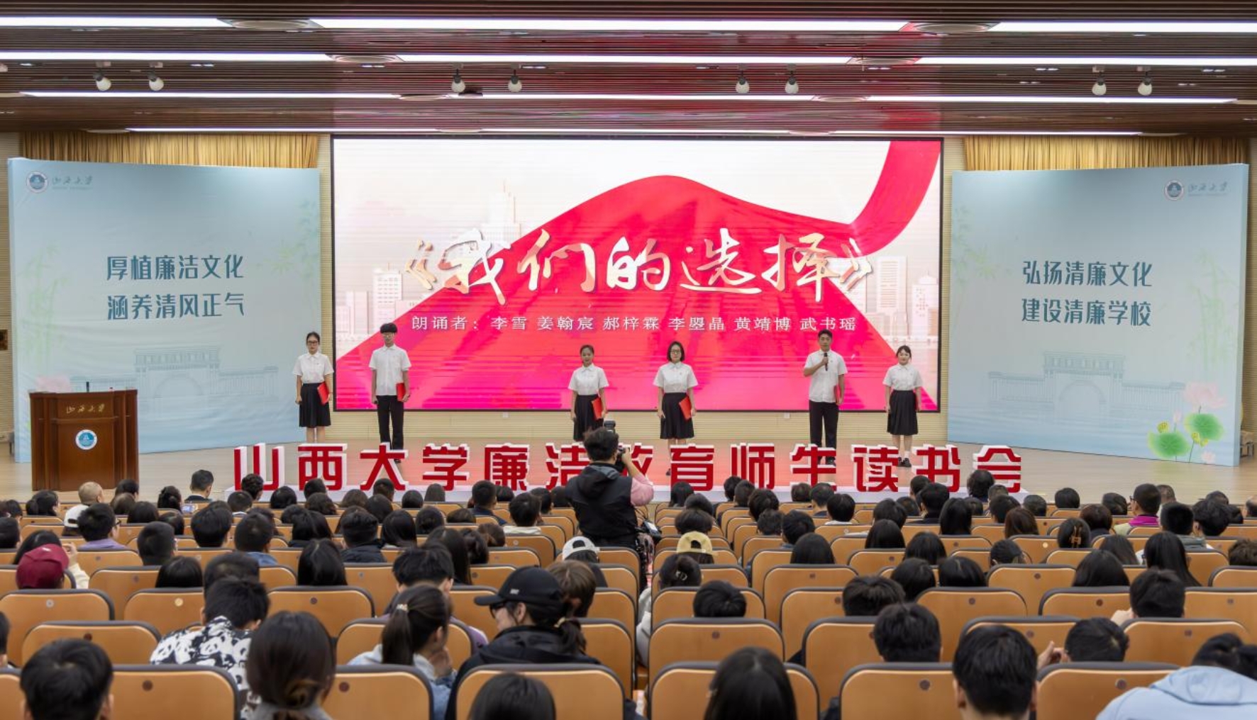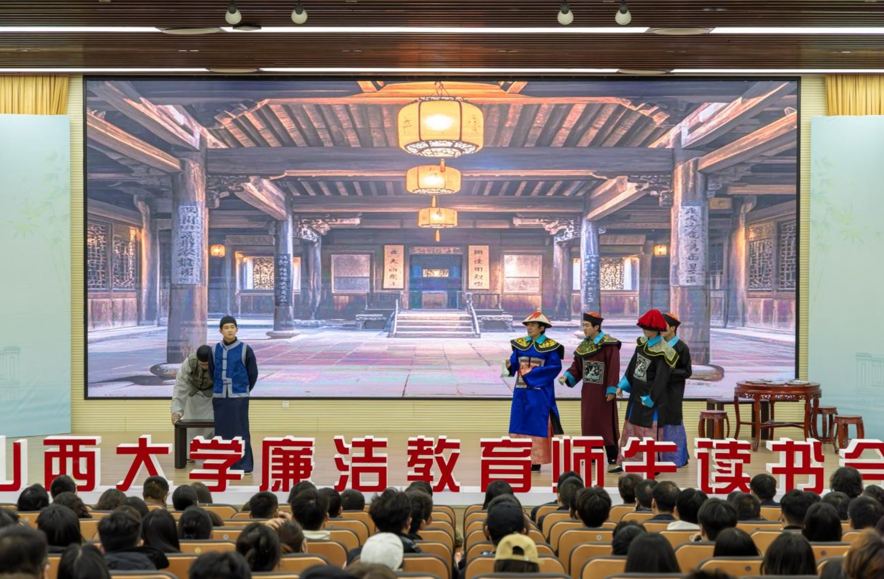 青年学子是担当民族复兴大任的建设者和接班人,廉洁教育是培养德才兼备高素质人才和提高青年思想道德素质的必然要求。师生读书会现场展示了文学院学生编演的短剧《于成龙》和新闻学院学生表演的配乐诗朗诵《我们的选择》。同学们用意气风发的身影、高亢有力的声音,发出了树清廉风骨、扬清廉风韵的号召。希望更多的师生参与到接下来开展的2024年度“清风廉韵”校园廉洁教育系列活动廉洁文化作品征集大赛中。
