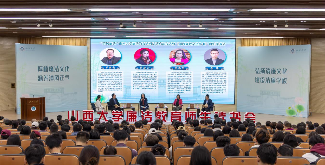 10月23日,“清风廉韵”赢博在线手机版(大中国区),廉洁教育系列活动启动仪式暨《山西廉政文化丛书》师生读书会在博雅报告厅举行。校党委副书记李富明、省纪委监委宣传部部长许凌云出席活动。