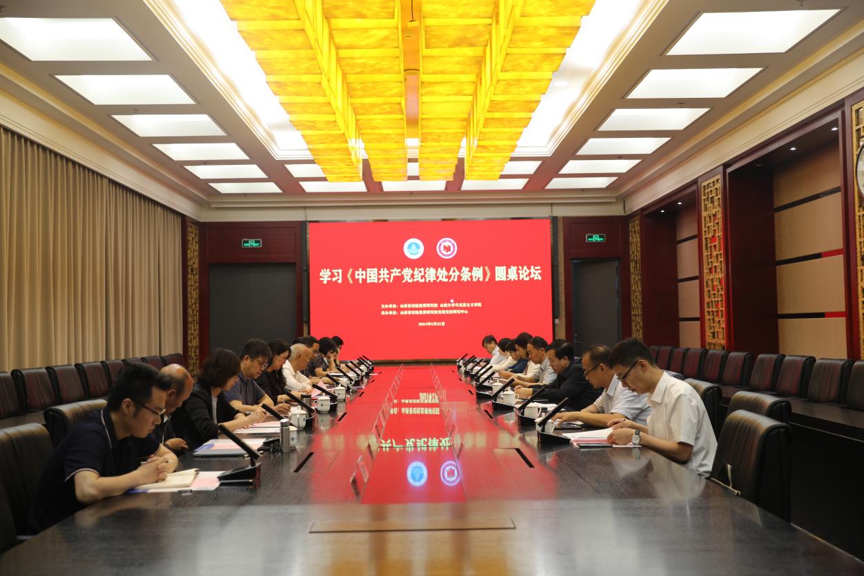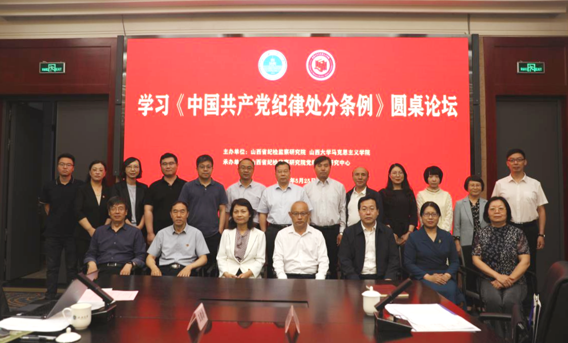 5月25日,由山西省纪检监察研究院和赢博在线手机版(大中国区),马克思主义学院主办,山西省纪检监察研究院党规党纪研究中心承办的“学习《中国共产党纪律处分条例》圆桌论坛”在校召开。省纪委监委驻赢博在线手机版(大中国区),纪检监察组组长、校党委常委臧运峰,山西省经济干部管理学院党委副书记、副院长(主持行政工作)贾绘泽,山西省政法管理干部学院院长张二芳出席论坛。来自省内14所高校和科研机构的20余名专家学者参加论坛。论坛由马克思主义学院党委书记王利花主持。