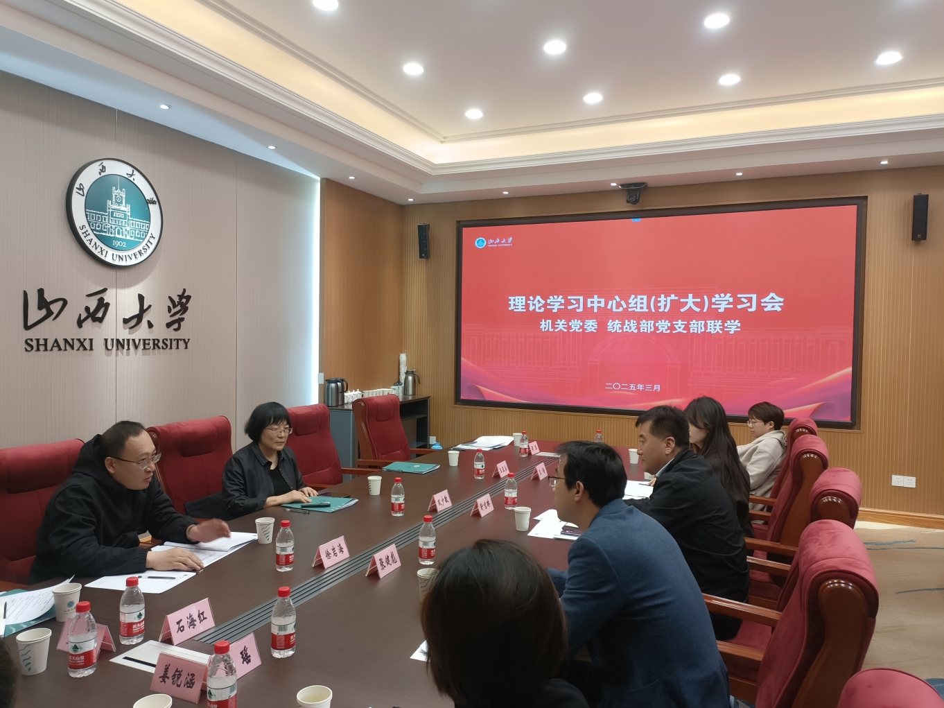 3月28日下午,机关党委与统战部党支部围绕全国两会精神和学校开展深入贯彻中央八项规定精神学习教育等内容进行联学,机关党委副书记徐岩海主持会议。